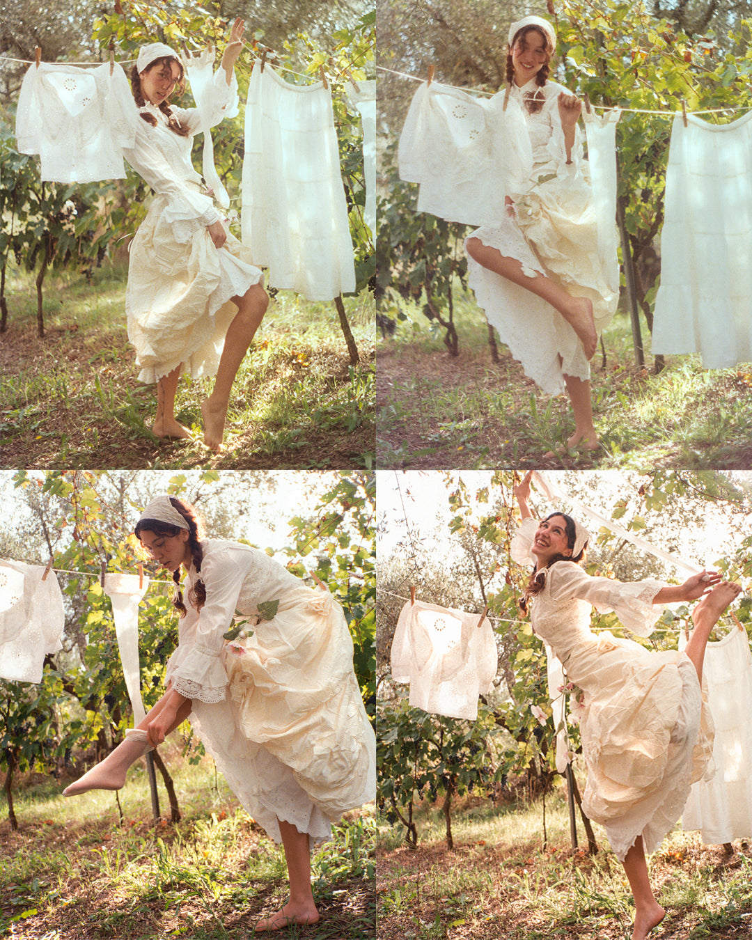 340 - OFF-WHITE SILK ORGANZA & ECRU LACE UPCYCLED WEDDING DRESS: UNIQUE EMPIRE GOWN WITH PLEATED WINGS